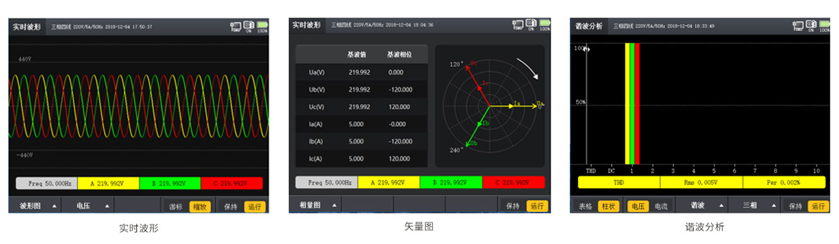 实时展示电压、电流波形,幅值,相位,谐波,不平衡,功率,闪变等所有电能质量参数。