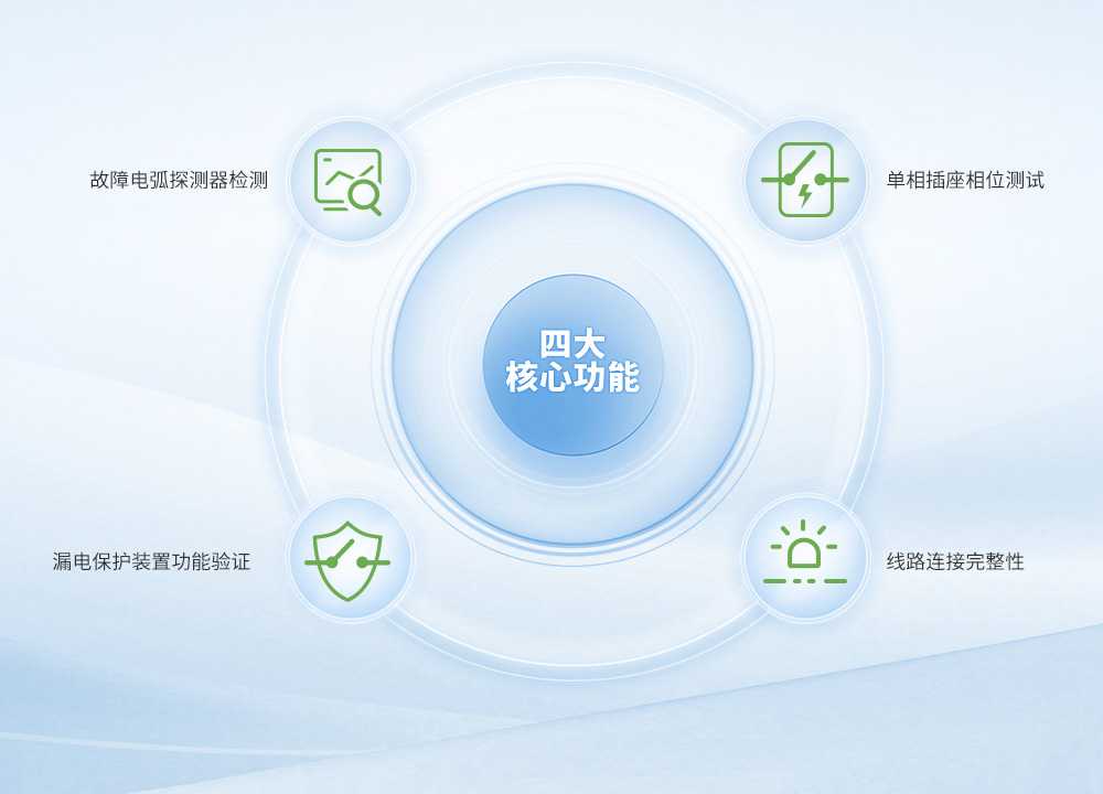 集故障电弧探测器检测,单项插座相位测试,漏电保护装置功能验证,电气线路负载性试验四大核心功能于一体。