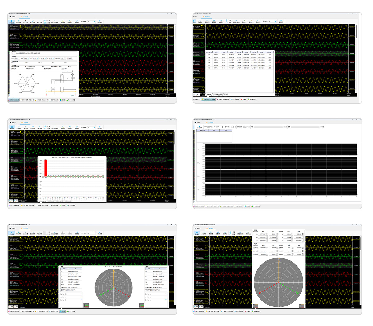 包含三相三线接线分析;功率、线损、电能计算;次谐波、间谐波分析;电压闪变分析、矢量图、序分量分析等。